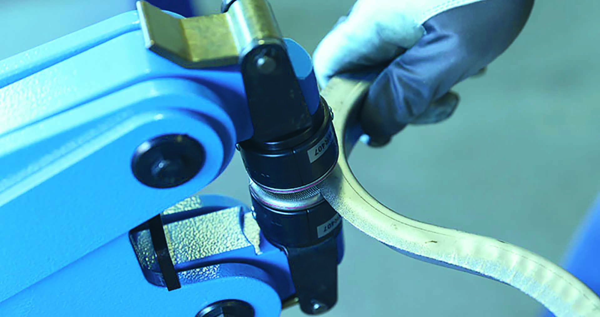 When working with the ECKOLD Handformer HF 100 PA, you can use both hands to hold and guide your workpiece, while the precision strokes are triggered with a foot pedal. The Handformer HF 100 PA is therefore the ideal device for the forming of large, unwieldy workpieces. The machine is pneumatically driven and features a pressure control device to prevent tool overload. Each machining process is actuated by pressing the foot switch, whereby the stroke force is proportional to the force applied to the pedal. This machine is thus a user-friendly alternative to the standard ECKOLD Handformer.